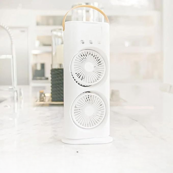 Portable Double Spray Fan – Hydrating Mist & Cool Air Combo