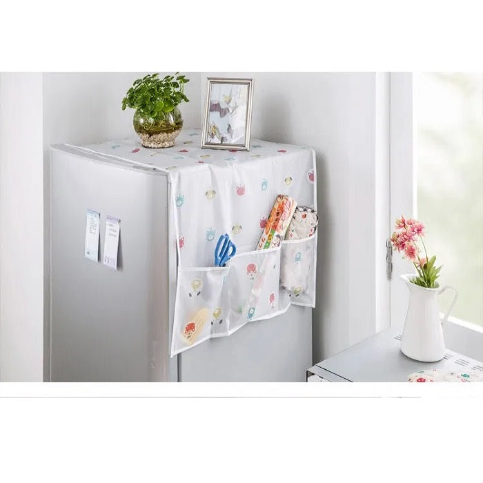 Waterproof Fridge Cover, Transparent Printing Waterproof Refrigerator Dust-Proof Cover with Storage Pockets Bags, Multi-Purpose Top Covers